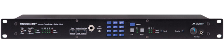 Interchange LTD allows remote access to your party-line intercom system. This 1RU rackmount interface includes a digital hybrid for connection to analog (POTS) phone lines.